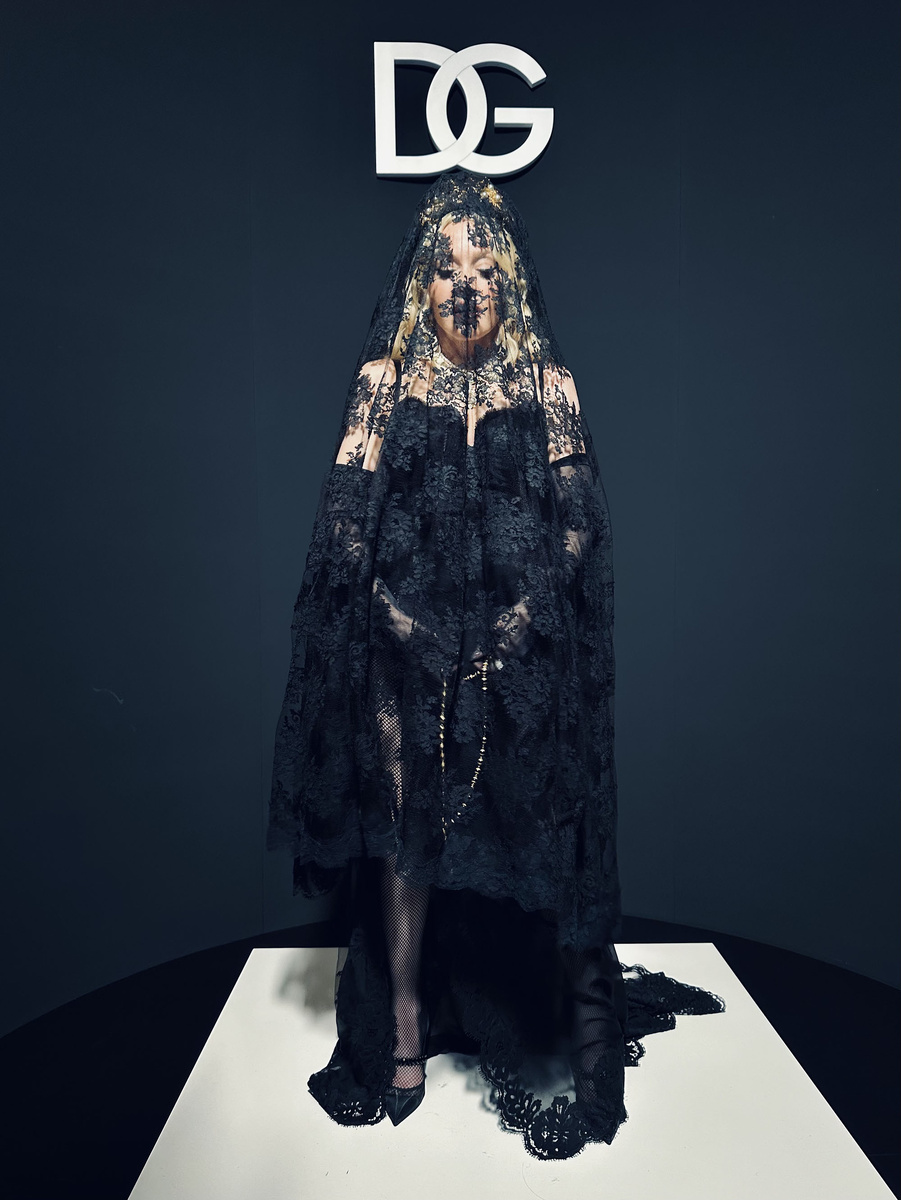Мадонна в золотой короне с кружевной вуалью в первом ряду Dolce & Gabbana на Нед